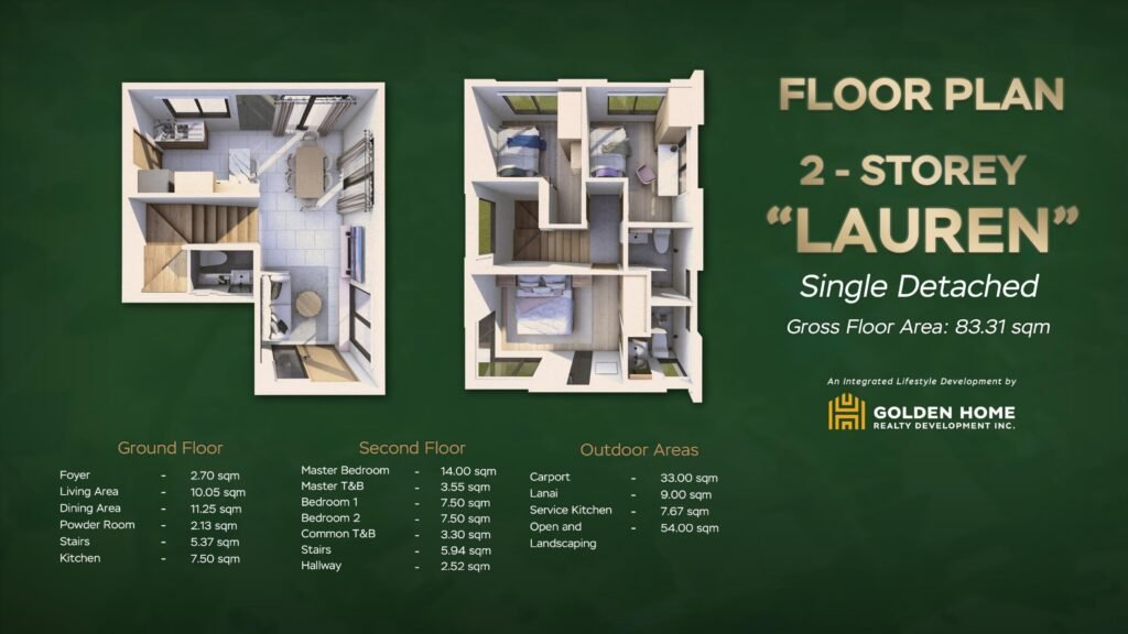 With 83.31 sqm of smartly used space, the Lauren model is built with future expansion in mind. Whether it’s an extra bedroom or a cozy home office on the ground floor, this home adapts to your evolving lifestyle. It’s the kind of space that grows with you—flexible, welcoming, and full of possibility.